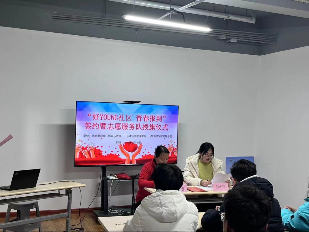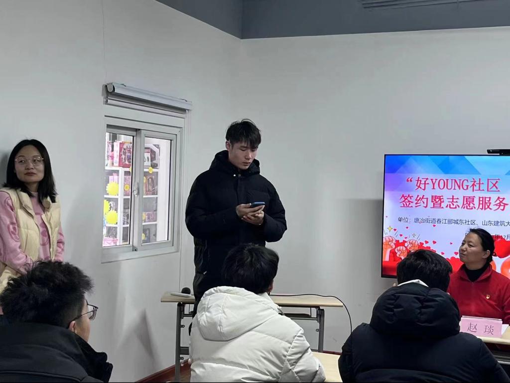 在书记致辞之后,山东另一大学学院团委与唐冶街道春江郦城东社区签订合作共建协议。