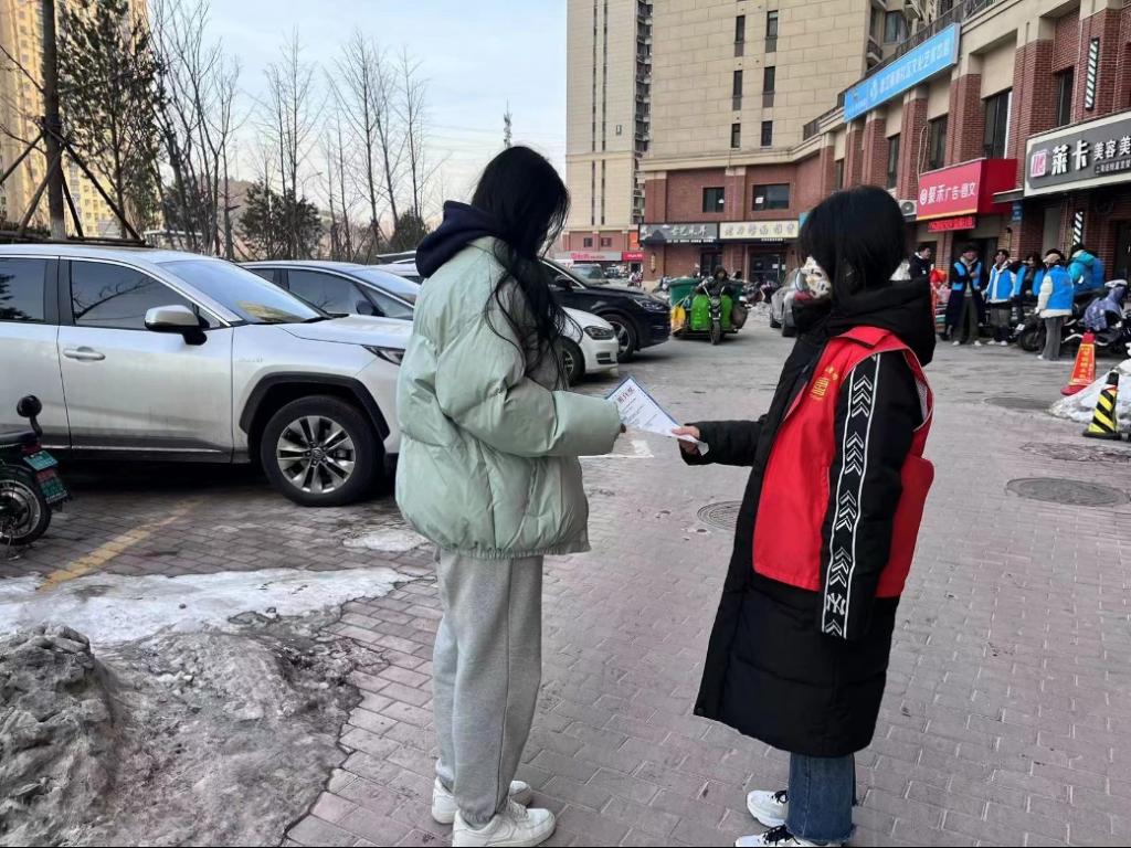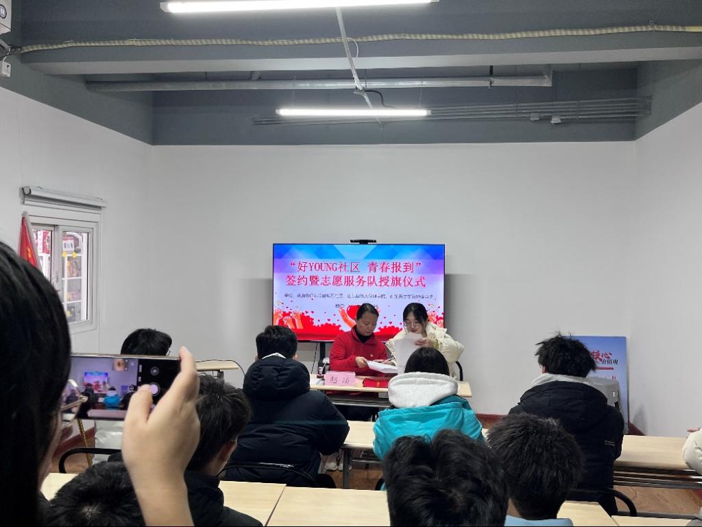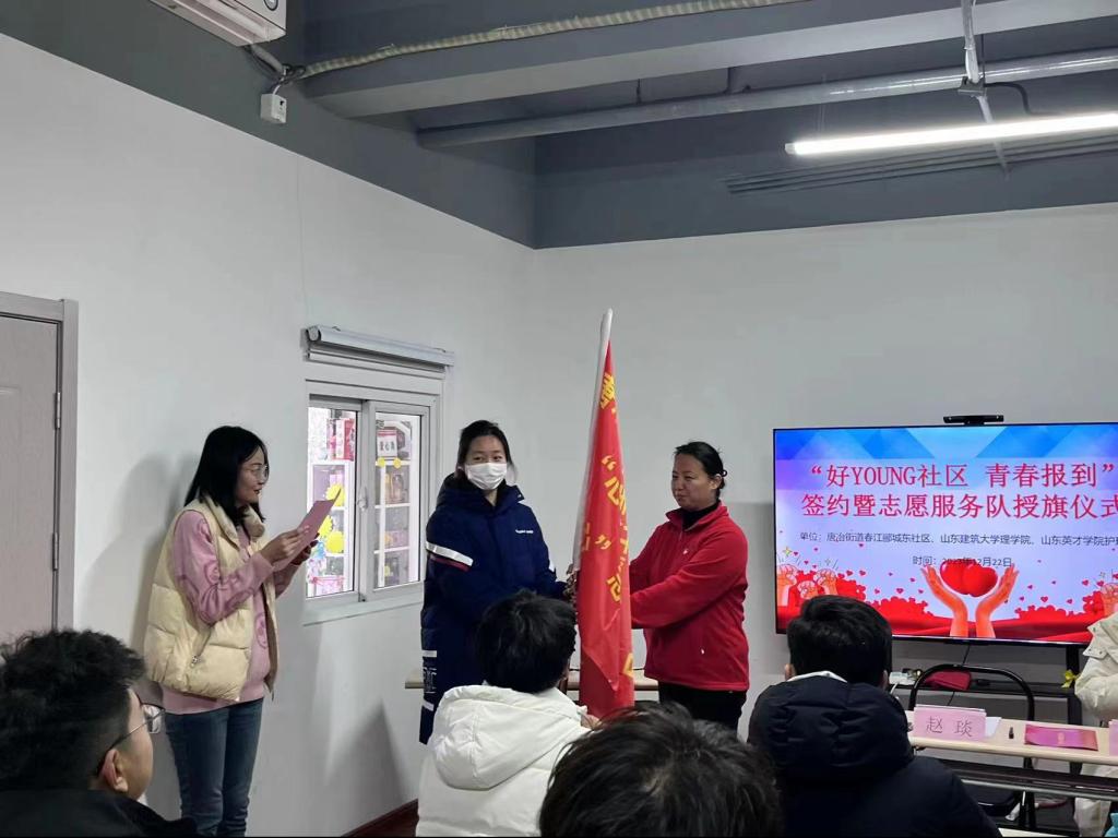 第二阶段是社区书记为山东英才学校学生志愿者代表授旗,大家在实践中增长知识,提高自身能力。