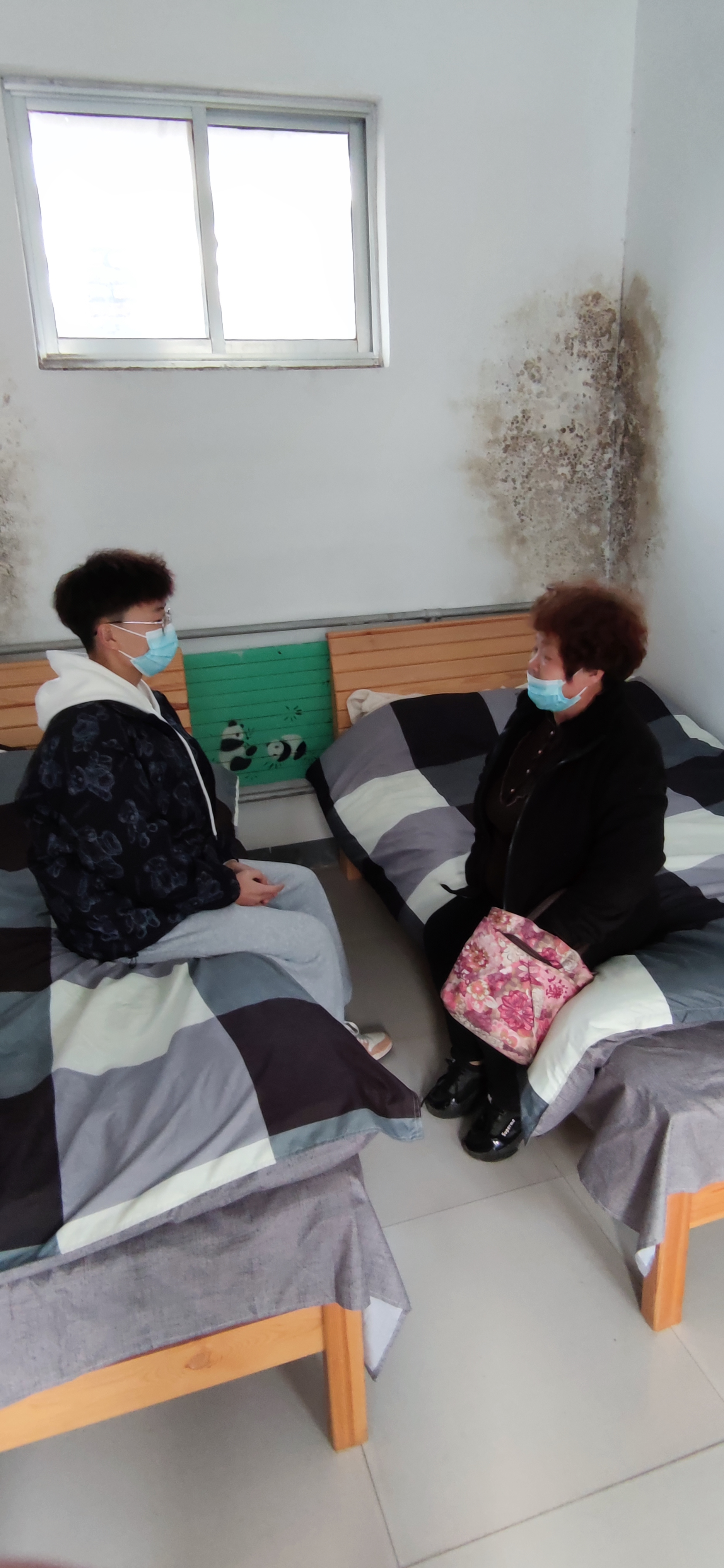 在我们志愿团队刚刚进入孙村敬老院后,队员与门前坐着的老人打招呼,并在门前与老人聊天,在这些老人的言语中,似乎能够感觉到他们的儿女很忙,通过聊天,也深入了解到了家庭的不易。也感到了老人的孤独感,和对有家人陪着的渴望。