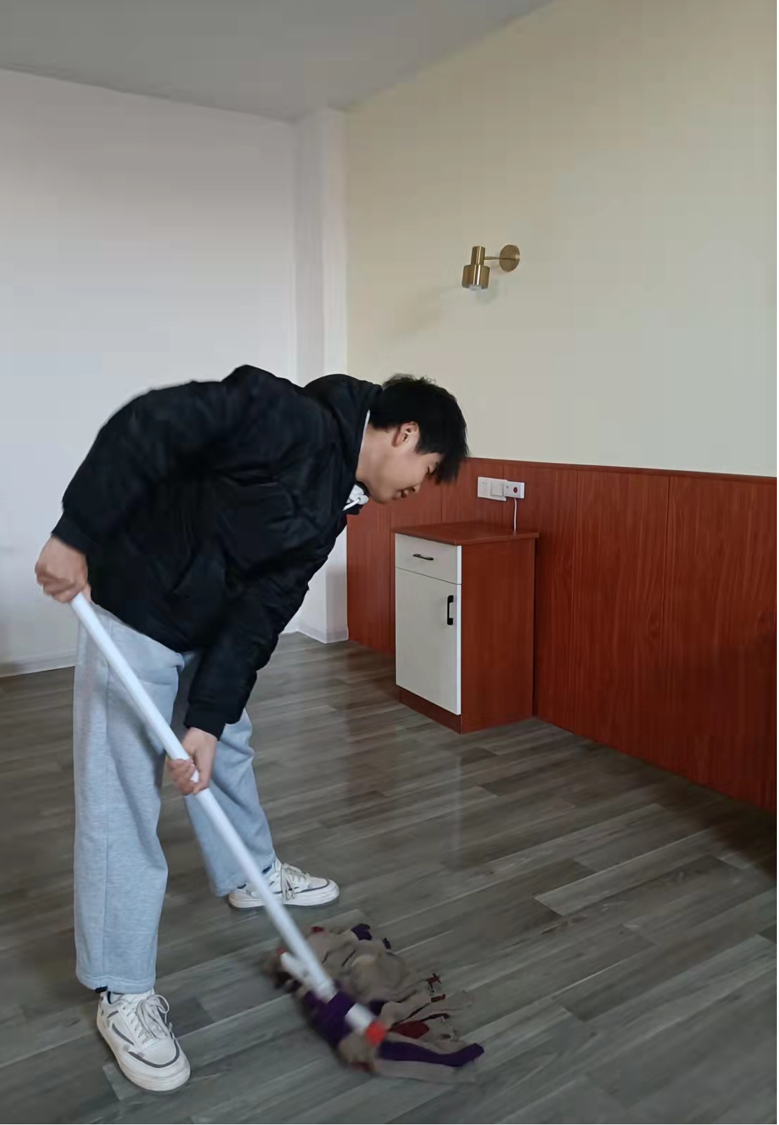 养老院虽说规模较小,但是需要打扫的地方也是不少的,志愿者们齐心协力共同打扫养老院。虽然志愿者女生较多但干起活来缺丝毫不差与男生。他们认真努力,干活时也不忘关心老人,他们想让自己的热情让老人感到温暖。