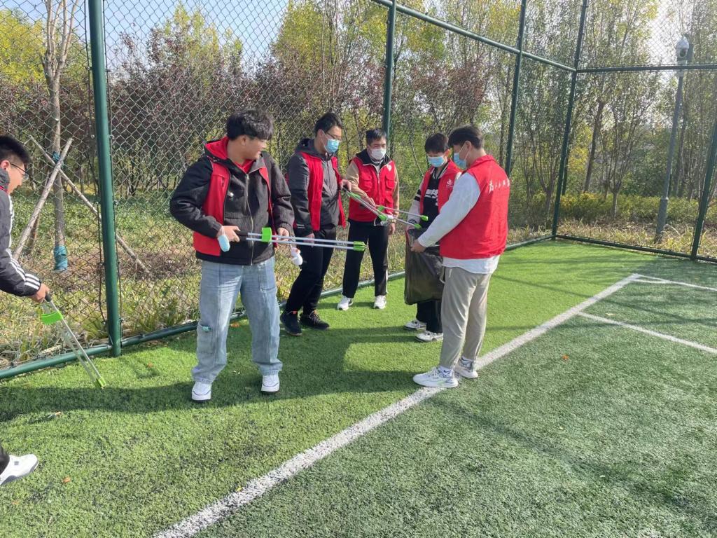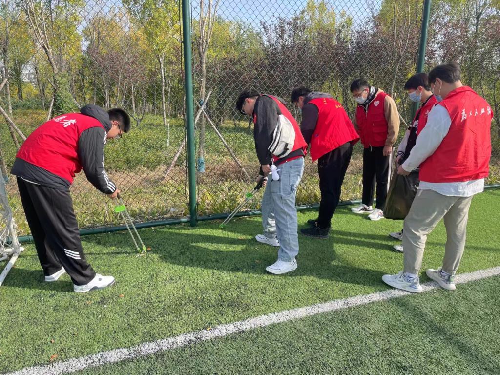 志愿者将对社区的足球场进行清扫,清理所有的垃圾,如烟蒂、纸屑和塑料袋等,还对附近郊区进行清扫卫生。在到达地点后进行了分工合作男生团队率先进行了垃圾清扫,将地上散落的烟头放入了垃圾袋。