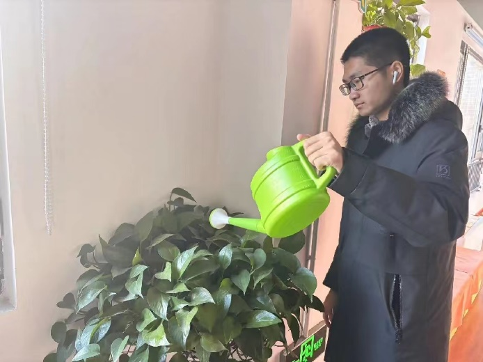 在志愿过程中志愿者们注意到许多楼道内绿植都很久没有浇水了土壤干裂叶子发黄,于是在进行工作的过程中也为社区绿植进行适当浇水,共同维护社区的绿色和谐美好的环境。
