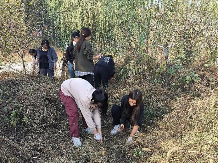 志愿者们很认真的学习用锄头轻松清理杂草,志愿者们纷纷上前实践。