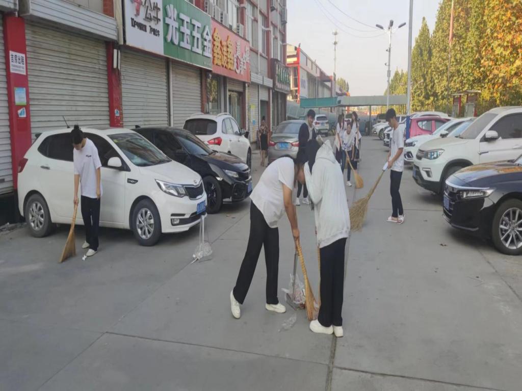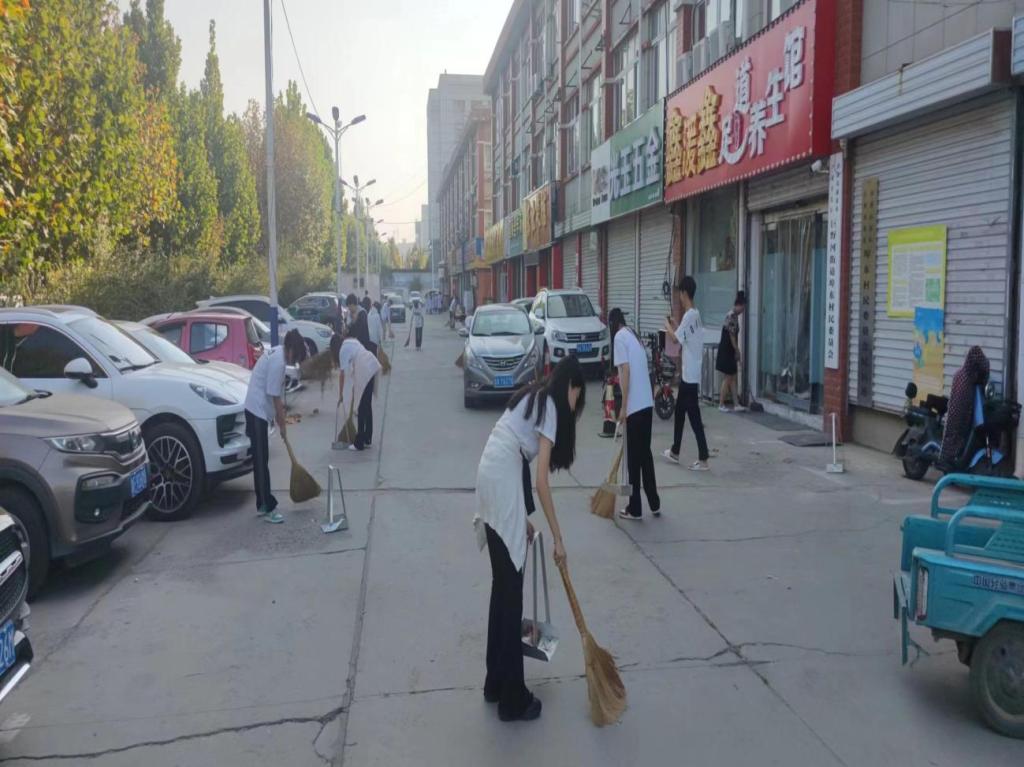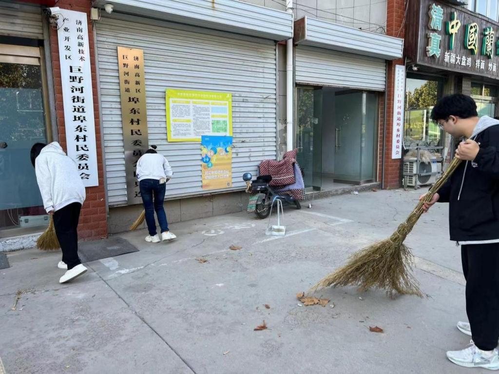 为积极响应学校关于大学生开展社会实践活动的号召,2023年10月31日,英才学院志愿者来到了埠东村商贸城,对街道进行卫生清理。