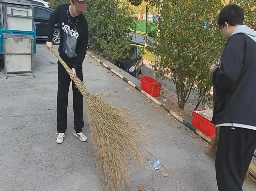 为了更好地完成清洁活动,志愿者们分工明确,两两一组,大扫帚和小扫帚一起使用,确保卫生做到极致。