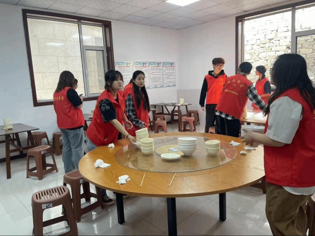 饭后同时他们积极主动承担起饭后的碗筷清洗。