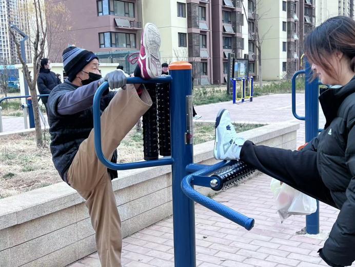 在与老人攀谈的同时,有些成员还加入了老人们的闲暇活动,以老人为师,跟老人学习太极拳、广场舞等运动。老人消遣的队伍顿时增添了年轻的色彩。还有些成员细心地发现了老人活动场地有些不干净的地方,立马招呼其他成员拿好卫生工具进行打扫。
