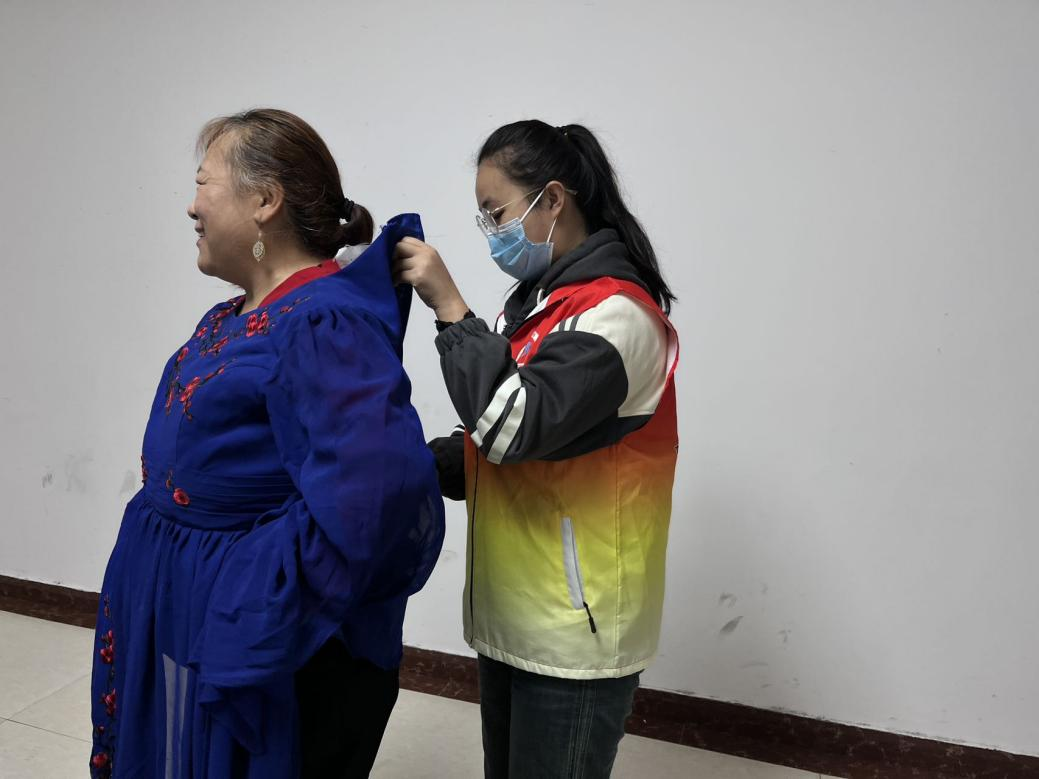 志愿者们不仅为现场活动摆放桌椅,调试现场摄影设备,为演出老人搬送演出服饰,帮助参与演出的老人整理衣物。队员们的热心服务和专业素养,让老人们感受到来自年轻人的关爱和温暖,用爱心和责任感为社区的老人们带来了快乐。