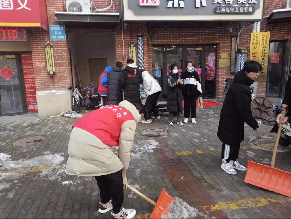 为了响应“百万大学生进社区活动”于2023年12月12日星期二下午,医学院高职护理2217班的大学生志愿者积极参与了春江郦城东社区开展的“青春助力,情暖社区”除冰扫雪志愿服务活动。