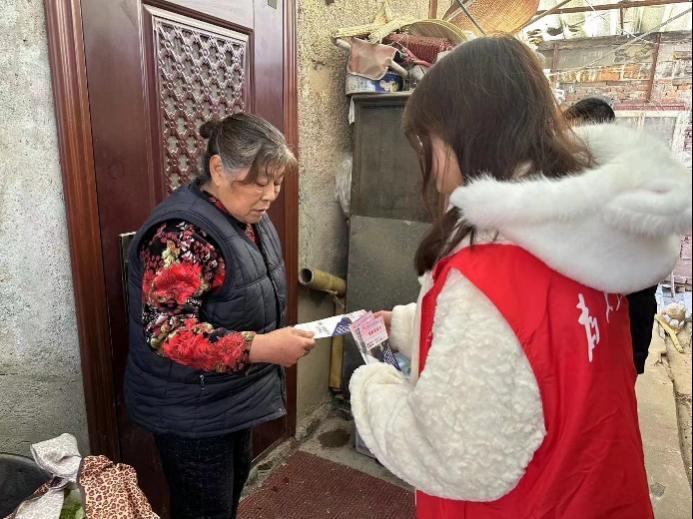 志愿者们到达目的地后,由社区负责人带领,分成两组为社区居民提供人文关怀,提醒医保缴费通知与用电安全宣传等。