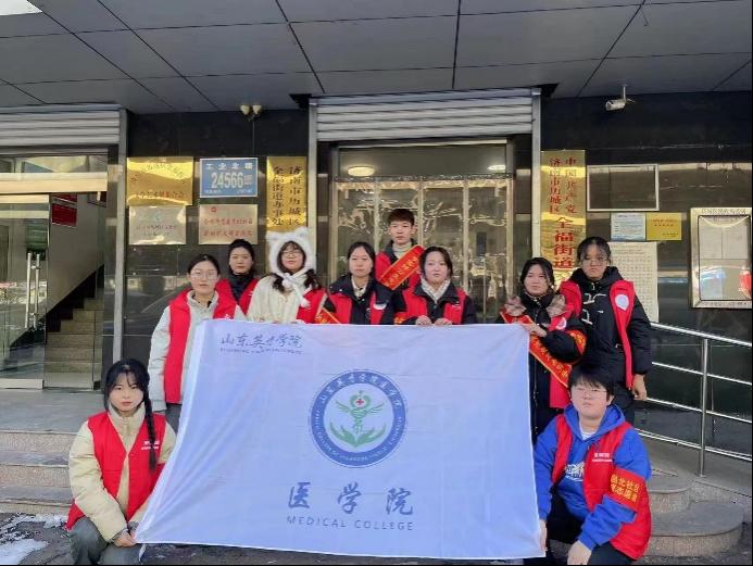 为共建美好社区,关爱居民安全生活,必赢bwin线路检测中心医学院的志愿者们于2023年12月21日上午来到历城区全福街道办桑园北社区开展关爱居民的实践活动。