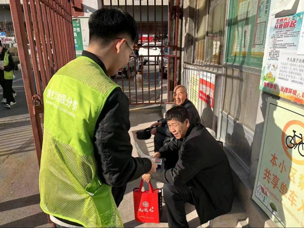 随后志愿者们为社区居民们宣传了垃圾分类,在发放宣传单的同时讲解垃圾分类知识,使居民们了解到垃圾分类的重要性。