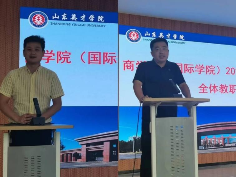 为顺利迎接教育部教育教学审核评估,推进新学期学院建设、教育教学等各项工作,8月29日下午,商学院(国际学院)在商学院学术报告厅召开了全体教职工大会,党总支书记、院长赵坤主持会议,党总支副书记徐宜慧,教学副院长殷永生出席会议并做工作部署。