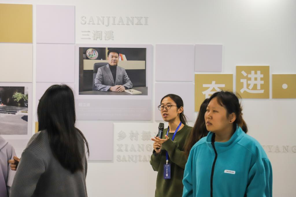 在相关人员的引导下,同学们对“三涧溪产业集团”的企业展厅、企业产品、带货直播间等进行了参观。产业负责人对各位毕业生进行职业知识的讲解与技能的培训,扎实推动主题教育走深走实,深化理论实践协同,确保毕业生为进一步深造自我和更好步入社会筑牢基础。