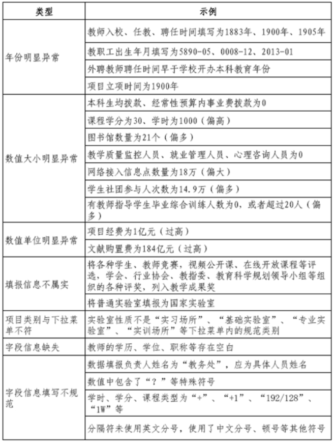 1.凭感觉、过往经验填写,未参照《填报指南》要求。如统计时间未按要求区分自然年、学年、时点。对部分表的部分字段不确定该怎么填时,请认真解读填报指南的指标解释,如果对一些数据内涵存在歧义,可以统一报至评建办,待咨询评估中心或者技术人员后再填报,切勿凭感觉填报。