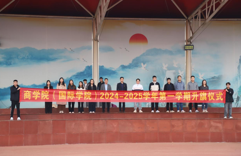 少成若天性,习惯之为常。大学生是精神文明的重要践行者和传承者,养成良好习惯,共建文明校园是大学生义不容辞的责任。校园文明习惯不仅反映一个学生的气质风度、阅历见识、道德情操、精神风貌,更代表着学校的教育水平和对外形象。为进一步增强同学们的文明意识,加强文明习惯养成,共建文明、整洁、有序、和谐的校园环境,积极培育和践行社会主义核心价值观,10月14日,商学院(国际学院)举行了“提升文明素养,创建文明校园”主题的升旗仪式,商学院(国际学院)党总支书记、院长赵坤,党总支副书记徐宜慧,团委书记李帅,2024级辅导员代表、部分学生干部以及2024级学生代表参加本次升旗仪式。本次升旗仪式由团委书记李帅主持。