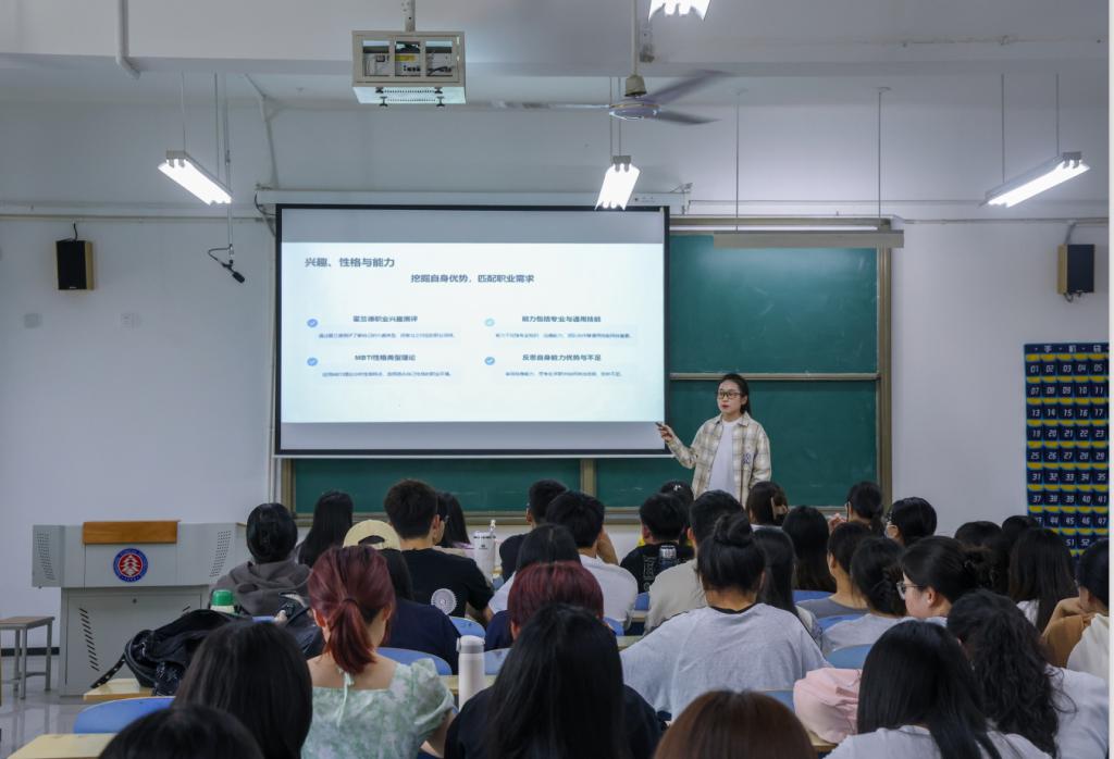 怀揣着对未来的憧憬与迷茫,莘莘学子站在了就业的十字路口。为帮助他们顺利迈出职场第一步,商学院(国际学院)精心筹备的大学生职业规划主题讲座重磅开启。2025年4月17日,商学院(国际学院)年级长陈晨于商学院楼504开展了一场内容丰富、实用性强的大学生职业规划主题讲座,提升了学生的就业竞争力,帮助了他们更好地规划职业生涯。本次讲座吸引了众多学生参加,现场座无虚席。