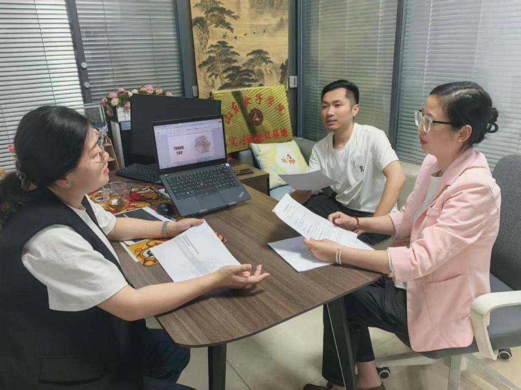 在聆听完企业介绍后,董晓迪、杨兴辉老师向张总介绍了商学院(国际学院)的专业设置、人才培养模式、学生实习就业等情况。他们表示,我院一直致力于为学生提供优质的教育教学资源,注重培养学生的实践能力和创新精神,希望通过此次访企拓岗活动,进一步了解企业的用人需求,为学生搭建更加广阔的就业平台。双方就实习基地建设、人才联合培养、课程共建等方面进行了深入探讨,并达成了初步合作意向。