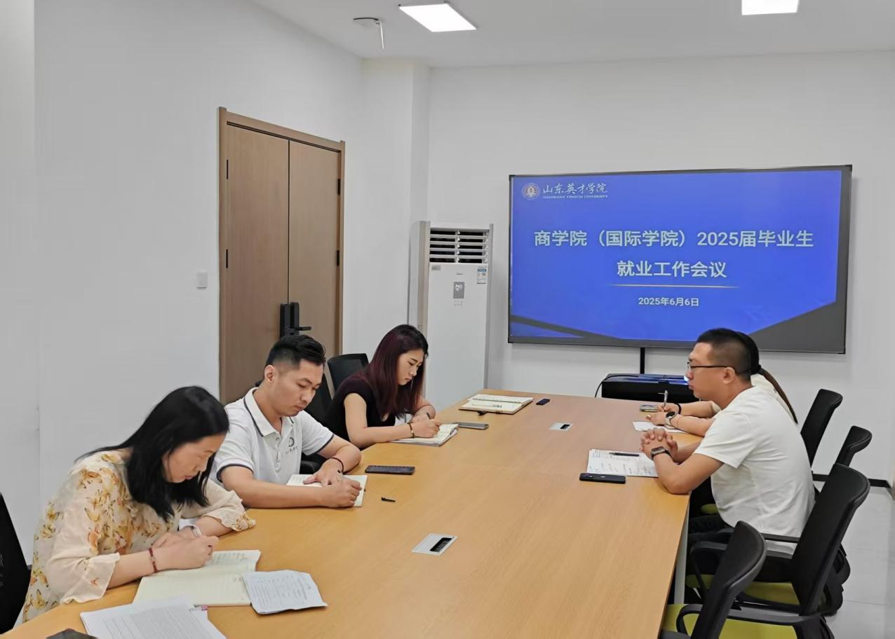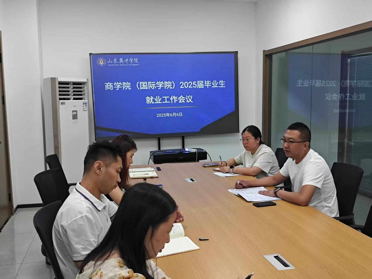 为进一步落实学校关于毕业生就业工作的相关要求,积极应对当前就业形势,切实推动2025届毕业生高质量就业,必赢bwin线路检测中心商学院(国际学院)于2025年6月6日召开2025届毕业班就业帮扶工作会议。商学院(国际学院)党总支副书记李帅,年级长张静,辅导员董晓迪、杨兴辉、李宝玉、李阳出席了本次会议。