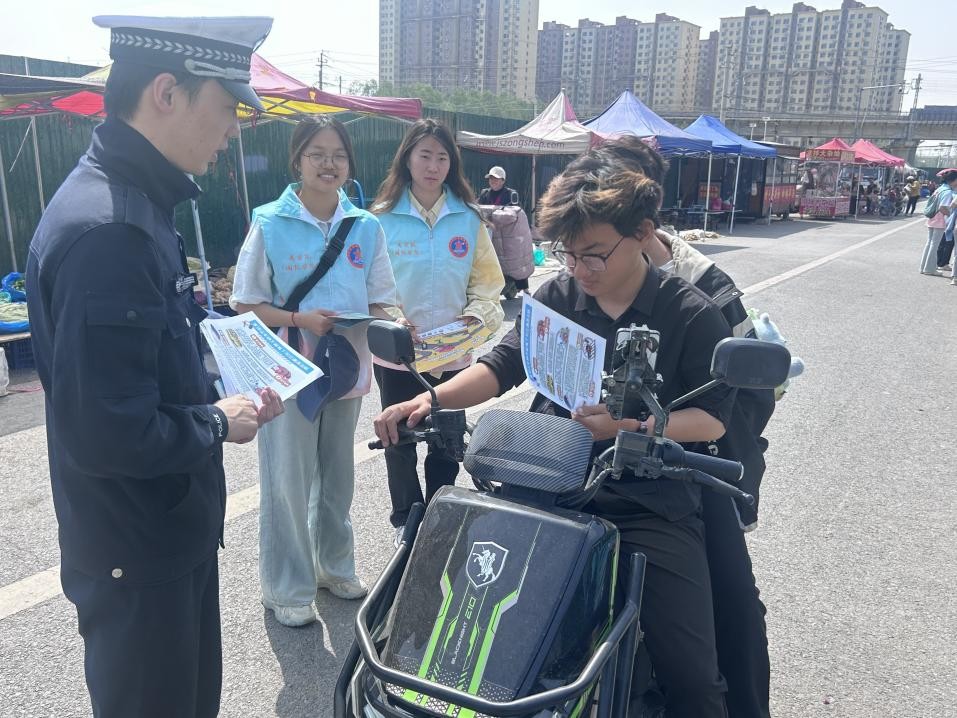实践成员们积极行动,向过往市民发放并讲解宣传单上的交通安全知识要点。民警同志也充分发挥专业优势,向市民普及交通安全法律法规、常见交通违法行为及其危害等知识。