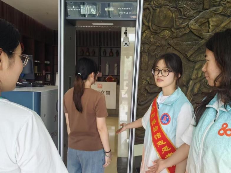 志愿者们分布于各个展厅,有的在门口安检处,有的在展厅入口处,引导游客有序参观,避免拥挤与喧哗。