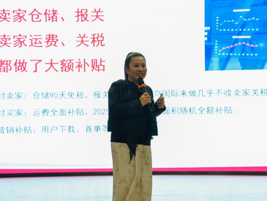 谈及跨境电商,盖总阐释跨境电商定义,介绍中国跨境电商市场规模极为庞大。她所在主创团队在跨境电商领域成果斐然,曾助力亚马逊平台眼镜类店铺一月登顶类目前三。团队自创新型培训机制,提前预判关税、平台走势,实现GMV增长与新流量布局。中国科技出海,如人工智能、5G、北斗导航等,为其发展提供有力支撑。