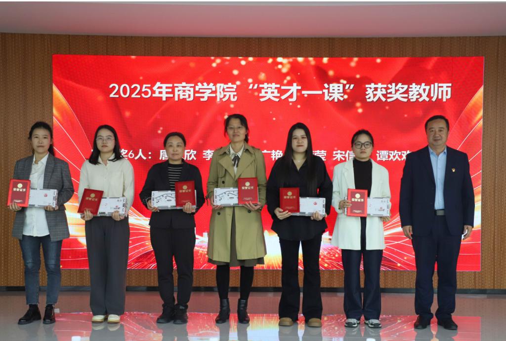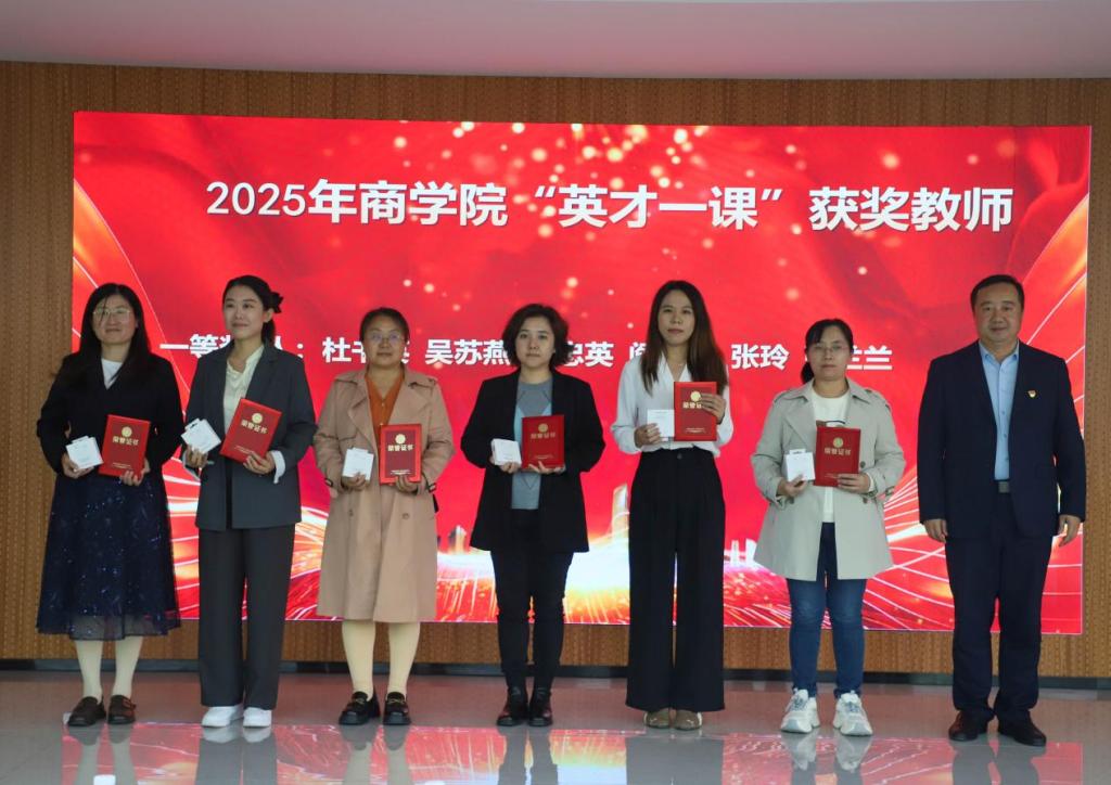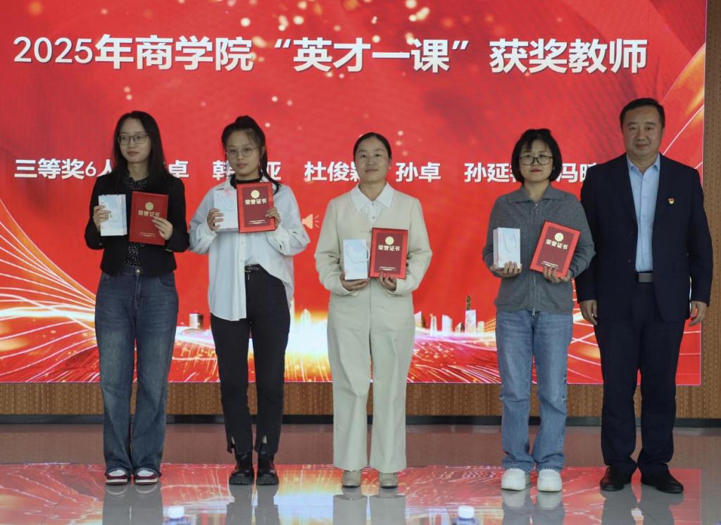 第四项,表彰2025年“英才一课”获奖教师。为提升教学质量、推动教学创新,学院于2025年6月启动“英才一课”教学比赛,共有110名教师参与。经过激烈角逐,杜书英、吴苏燕、王忠英、阎天一、张玲、张兰兰6人荣获一等奖;唐欣欣、李秀娟、任广艳、朱莹莹、宋信菊、谭欢欢6人获二等奖;李卓、韩淑亚、杜俊颖、孙卓、孙延艳、冯晴6人获三等奖。高奎主任为获奖教师颁奖。