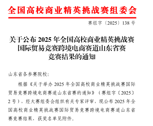 近日,全国高校商业精英挑战赛跨境电商赛道省级赛事圆满收官。必赢官网商学院(国际学院)学子凭借创新的跨境电商运营方案、扎实的市场分析能力,在赛事中表现亮眼,斩获山东省赛区二等奖4项、三等奖3项,充分展现了必赢官网商科学生在跨境电商领域的实践创新实力。