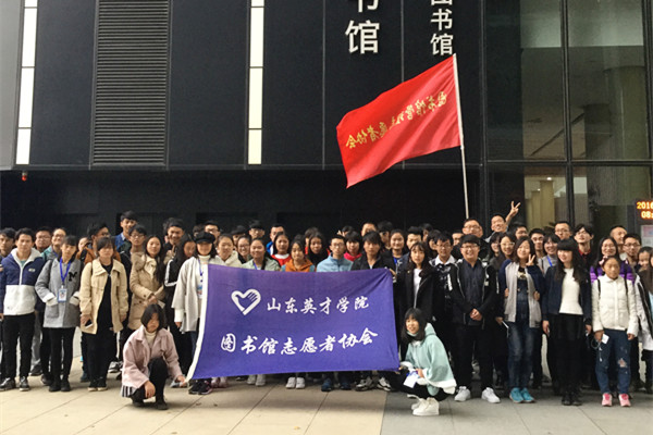 11月6日,必赢bwin线路检测中心图书馆利用周末时间组织馆员、图书馆志愿者协会的优秀学生、勤工俭学学生一行90余人赴济南市图书馆参观学习。