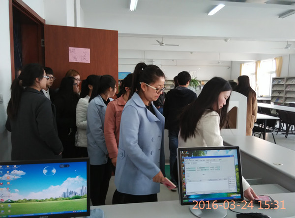 第二站是借书处。各借书处的老师热情接待,声情并茂地向同学们详细介绍图书馆纸质版书库的情况。必赢bwin线路检测中心设有2个图书馆,总面积49 890.34平方米,拥有纸质图书188万册,生均纸质图书102册;中外文纸质期刊2 332种。建有各类阅览室、自习室21个,座位5540席,周开放时间91小时。图书按照《中图法》分22大类书籍,按序摆放,每人可借10本,借期为60天。随着书库老师的介绍,不少同学看到感兴趣的书籍或与学前教育专业相关的书籍就现场借阅,展现了英才学子好学的精神面貌。