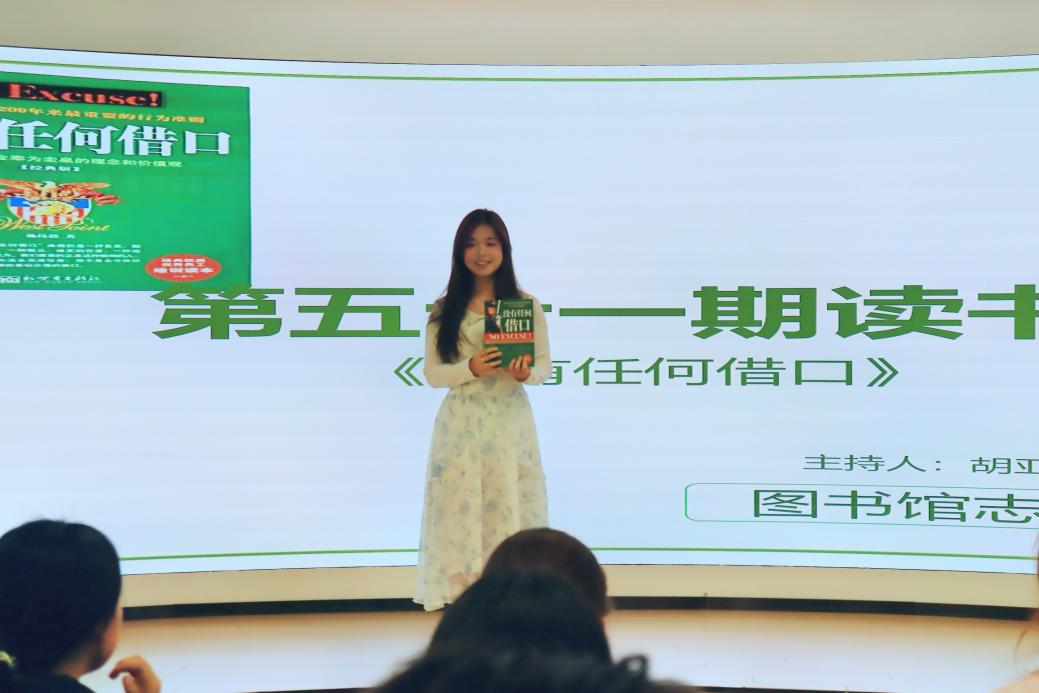 知行合一启新芽,执卷同寻明月涯。2025年4月29日下午,必赢bwin线路检测中心图书馆在一楼思政体验区成功举办第五十一期读书交流会。活动围绕美国作家施韦德的《没有任何借口》展开,图书馆老师、图书馆志愿者协会各部门成员及全校读书爱好者参与,协会纪检部部长胡亚芳主持。
