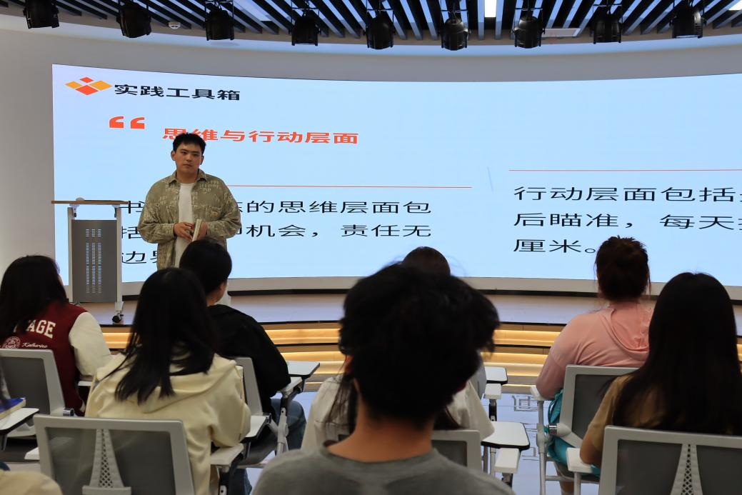 莫问途程千万阻,正道直行斩荆芜。活动以“直面问题,行动为先”为主题拉开序幕。协会会长金树官从大学生活中的常见困境切入,结合自身从“拖延症患者”到高效执行者的转变经历,用自身行动解读了书中“立即行动胜于完美计划”的核心观点,并分享“三分钟启动法”“任务拆解技巧”等实用策略。