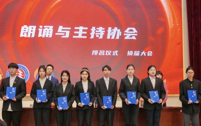 校团委社团管理老师王斌代表学校对朗诵与主持协会的换届大会暨更名仪式进行指导监督并见证。他指出,未来希望通过朗诵与主持协会,营造“书声琅琅、书香校园”的文化氛围,倡导全校师生多读书、读好书。要引领师生与知识为友,让书香溢满校园,让学生与经典同行。