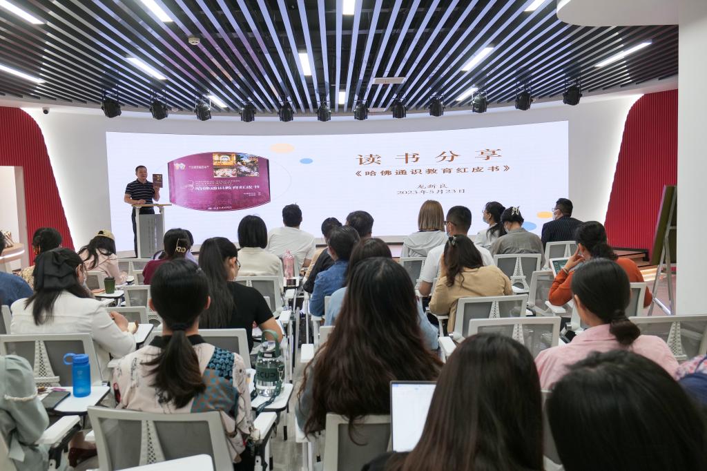 通识教育学院院长龙新良作主题演讲并分享《哈佛通识教育红皮书》,他表示,这是一本介绍哈佛大学通识教育的经典著作。这本书的主要目的是探讨通识教育的理念、目标和方法,以及如何通过通识教育来培养具有全面素质和能力的人才。可以帮助读者更好地理解和掌握通识教育的核心内容和方法,以及如何将通识教育的理念应用到实际生活中去。尤其是书中“通识教育与专业教育不是两种教育,而是教育的两个方面”的观点,与我们当前教育教学实践中的思考和探索非常契合。无论是对学生还是教育工作者来说,这本书都具有非常重要的参考价值。