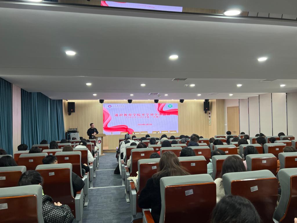 龙新良院长重点传达了新学期学院工作总体思路,对进一步完善通识教育顶层设计、进一步提高教师教学能力、进一步加强课程建设、进一步加强教科研能力、进一步突出党建引领等五个方面进行总体部署。并要求全体教师严格遵守师德师风要求,坚定政治方向,潜心教书育人,坚持言行雅正,真正把教书育人和自我修养结合起来,时刻自重、自省、自警、自励,自觉做以德立身、以德立学、以德施教、以德育德的楷模。在具体工作方面,针对正考及格率、人事考勤、期初教学检查等进行通报。