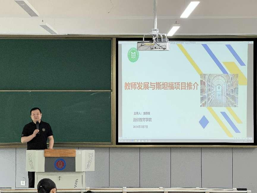 为进一步引导教师做好职业发展规划,拓宽教师提升自我的途径,加强教师对学历提升、斯坦福国际大学留学项目的了解,5月7日,通识教育学院在南校区弘毅楼102室举行教师发展与斯坦福项目说明会。通识教育学院院长龙新良出席并主持活动,通识教育学院全体教职工参加会议。