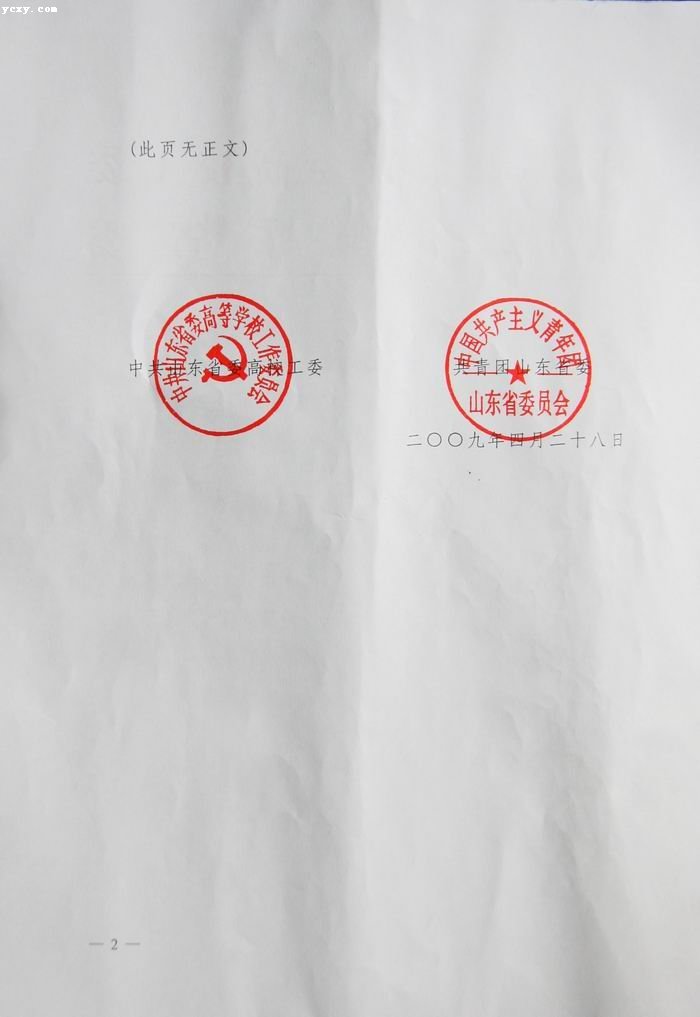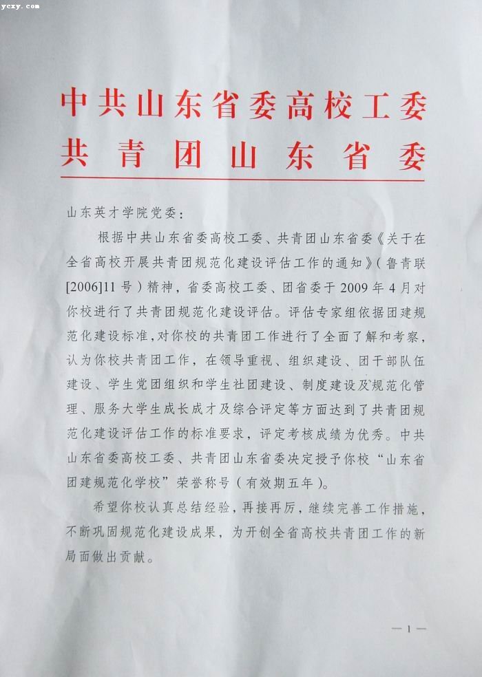 2009年5月7日,省高校工委、团省委为我院授牌“山东省团建规范化建设学校”。
