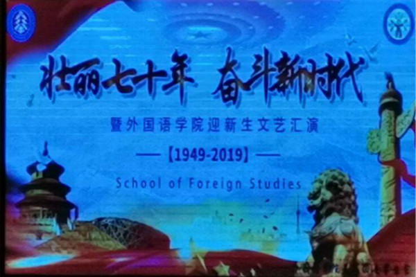 为迎接2019级新生暨建国七十周年的到来,展现我外国语学院莘莘学子的风采。11月5日晚6点,由外国语院基层团委学生会主办的“壮丽七十年,奋斗新时代”的迎新文艺晚会在必赢官网大学生活动中心炫目起航。