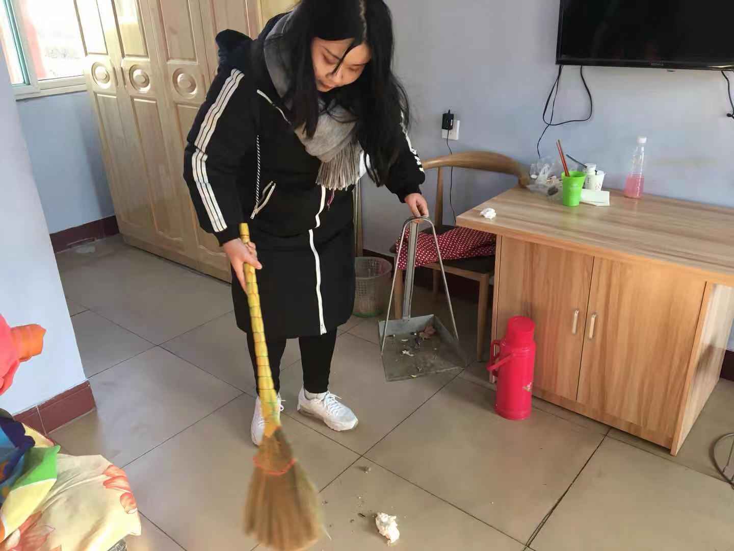 志愿者为老人打扫房间
