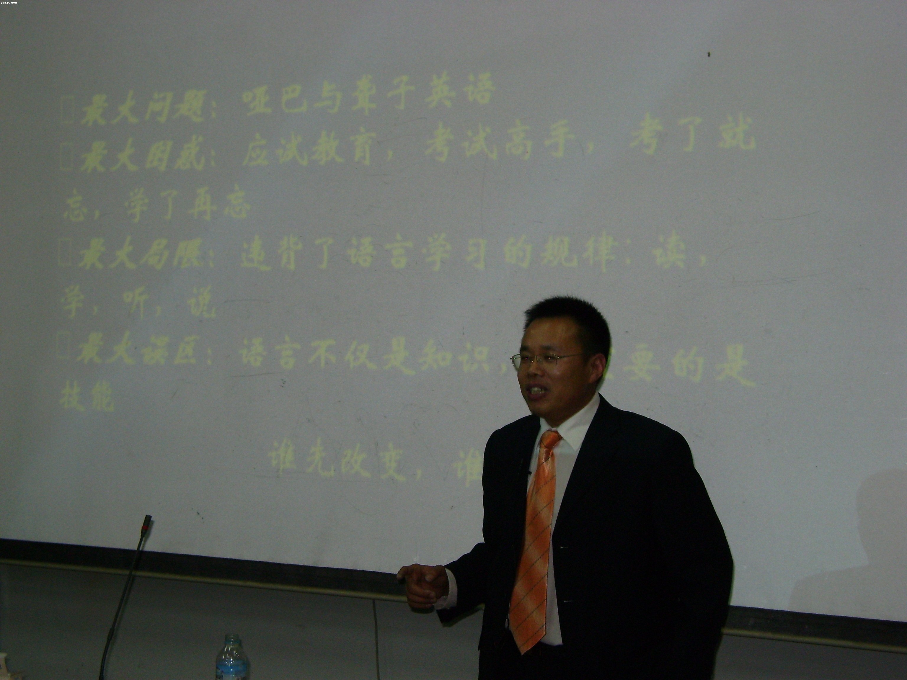 2008年3月27日19点,外国语学院团总支举办了一场别开生面的“斯坦福英语讲座”,讲座的主题为“激情点燃梦想、英语改变未来”。