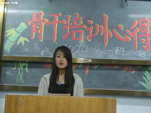 08年第一期骨干培训结束后,各班骨干学习到很多知识,他们以演讲比赛的形式把对于本次培训的心得与其他人分享,互相取长补短,共同进步。在演讲比赛中,各班班长和团支书用精彩的演说向老师和同学们汇报了他们的收获以及经验,使骨干培训活动得到了升华。