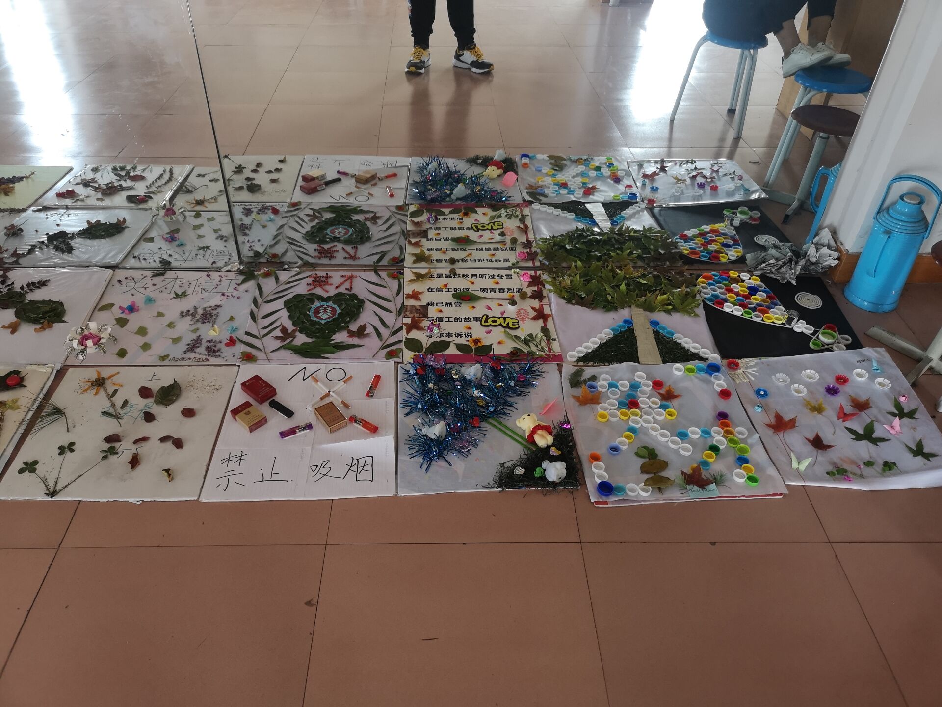 在这两天里,各班级的同学收集落叶,树枝和烟头等,创作出以材料为主题的“禁止吸烟”,以宣传学院精神为主题的“英才信工”等等画作。这次画作创作的意义是加强信息工程学院各班级同学间的交流和感情。弘扬团队中合作精神和培养同学间竞争意识,令信工学子提前培养未来团队工作中合作精神和竞争意识。各班级的同学们积极参与“创意画展”即表明了同学们对学院活动的支持和热爱校园环境,同时也是对信息工程学院学生会生活部的工作的一种认可和鼓励。这次活动拉近了彼此的距离,为生活部成员接下来的工作开展有着积极意义。