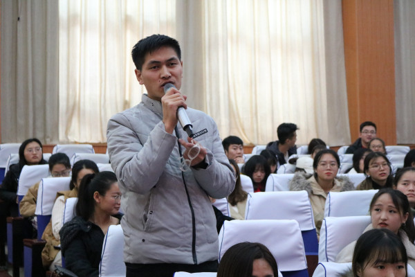 大会伊始,负责新疆喀什地区教师招聘的韦志永老师介绍此次宣讲会的目的,通过播放视频《大美喀什》介绍喀什地区的风景、发展状况,并向同学们宣传喀什地区教师良好的待遇。接着现场提问环节,同学们对于喀什地区安全问题比较重视,韦志永老师详细解答问题,并保证教师任职上岗后政府将大力支持,保障教师利益。另外,同学们还问了关于面试是否需要教师资格证、任教多久等问题,四位老师一一解答。宣讲会最后,感兴趣的同学们陆续填写报名表,并前往弘毅楼5015教室参加面试。
