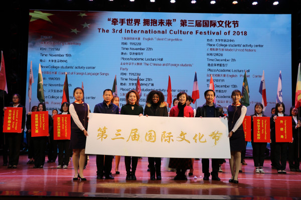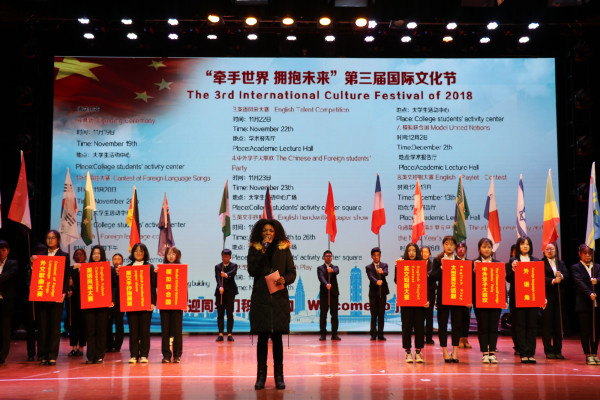 为了让同学们更好的把外语融入生活,发挥语言的无穷魅力,外国语学院于2018 年 11 月 19 日在大学生活动中心举办了以“ 牵手世界,拥抱未来” 为主题的第三届国际文化节开幕式,出席本次活动的有院长张维娜,副院长张艳芳,副院长曲永存,副院长傅廷真和外教Vanita以及五百余师生代表。