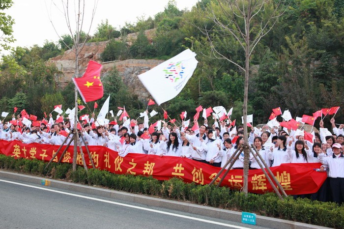 2009年10月15日 ,在王珑副院长、黄玉海、王春华等辅导员的带领下,我院100名志愿观众沿途观看火炬传递活动。通过参与在本次活动中充分体现了我院学子对全运会的热情和无私志愿服务的精神。