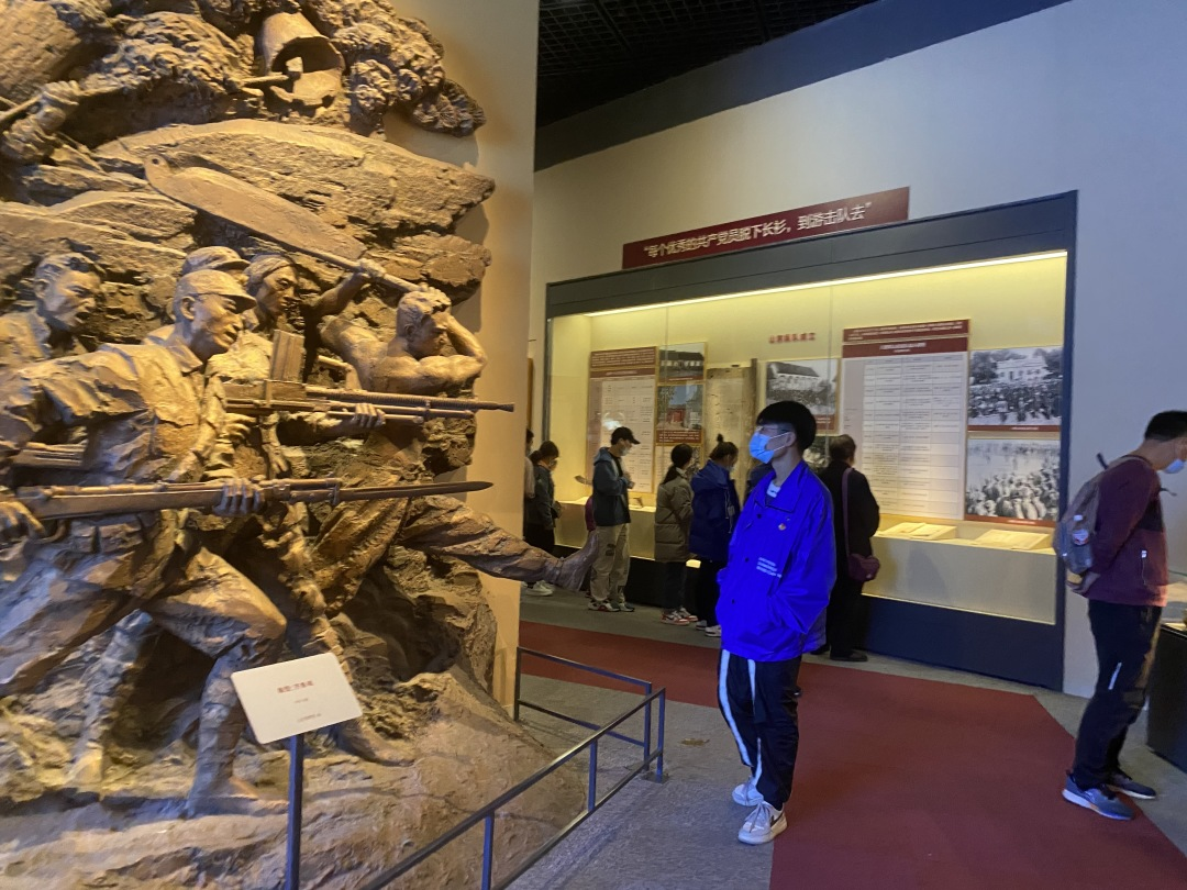 一件件珍贵的文物实物、一幅幅生动的照片图片、一张张详实的图示图表……徜徉其中,眼前仿佛浮现一批又一批共产党人前仆后继的身影,他们在风雨激荡之际挽民族于危亡、扶社稷于倾颓,以血汗为墨,绘得红旗飘扬、山河锦绣、百年荣光。