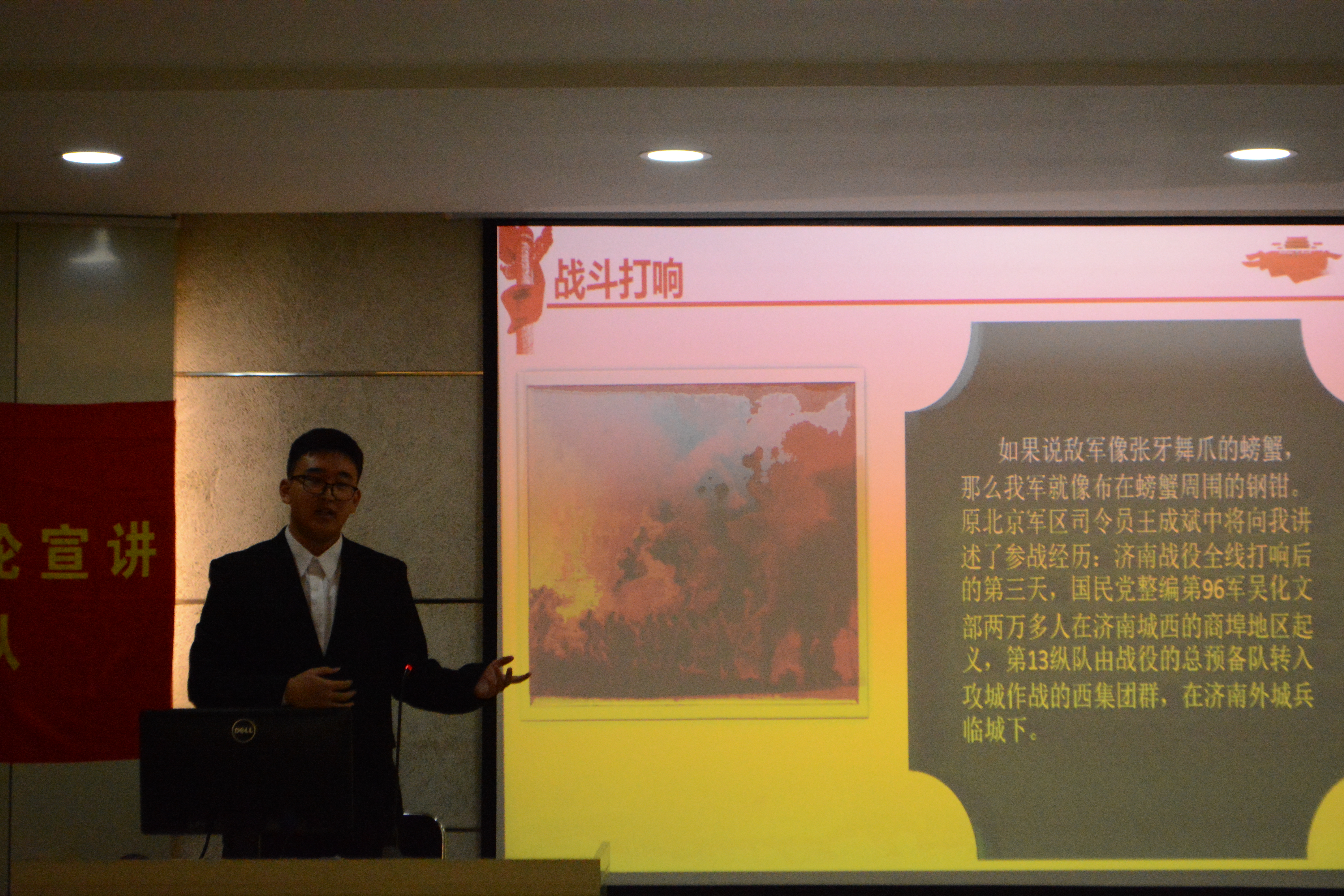 宣讲引起了强烈的反响和共鸣,得到了领导的重视与肯定,很多同学眼里泛出泪光。缅怀先辈伟绩,回顾革命精神,济南战役“革命文化”宣讲会使同学们学习到了革命先烈不畏牺牲,保家卫国的红色精神,知晓了作为新时代的青年,不能空谈爱国励志、求真力行,而是必须要有坚持实事求是的精神。继承先烈遗志,争做担当民族复兴大任的时代新人,以永不懈息的精神状态和一往无前的奋斗姿态,为建设富强民主文明和谐美丽的社会主义现代化强国,为实现中华民族伟大复兴的中国梦不懈奋斗!