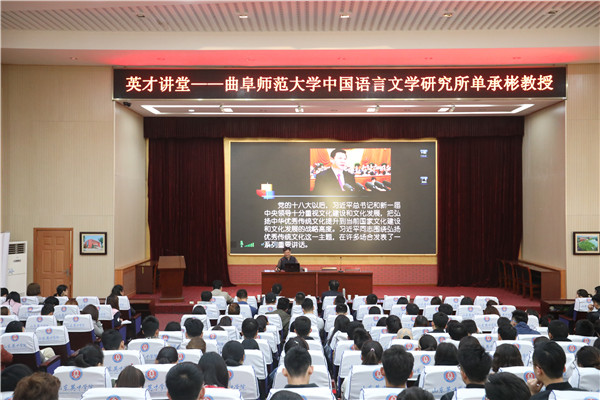 在报告上,单承彬教授将弘扬与传承优秀传统文化置于经济全球化和文化多元化的时代背景下,认真分析了弘扬与传承中华优秀传统文化在全面建设小康社会、实现民族伟大复兴历史进程中的重要意义。为同学们冷静分析了当下“国学热”的种种乱象,认为“简单化、功利化、庸俗化、偏狭化”是导致“国学热”“虚火”旺盛的主因。就传承和弘扬中华优秀传统文化的方式和路径,他指出,我们日常的生产、生活里蕴藏着最鲜活的优秀传统文化元素,经史子集等文化经典是传统文化取之不竭的宝藏。只有通过系统的儒家经典教育、文化经典教育、社会规范教育(习惯养成)、历史认同感和责任感教育以及人格教育等,从而激活深潜在我们民族成员内心深处的价值观念、审美取向和心理认同,唯此才能够真正实现民族优秀传统文化的传承。