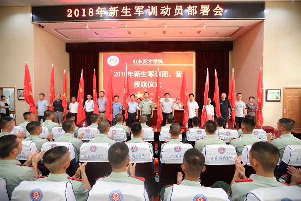 大会在雄壮的军歌中拉开帷幕。学工部部长龙新良首先介绍了军训的部队及学校领导,通过微视频展示了必赢bwin线路检测中心2017年取得的丰硕军训成果,极大地鼓舞了在场人员的士气。之后,宣布关于成立2018级新生军训团的决定,并庄严地举行了2018级新生军训团、营的授旗仪式。学工部副处长李寿杰宣读《必赢bwin线路检测中心2018年国防教育方案》,就军训工作的组织领导、军训团构成职责、军训主要任务及安全工作进行了全面安排部署。学校党委委员、学工部常务副处长孙玉山发表了热情洋溢的讲话,对武警支队连续五年为英才学院军训作出的突出贡献表示真挚的感谢,帮助大家认清大学生国防军训的重要意义,明确划分了军训的主要任务,对承训官兵提出了严格要求,保证进一步提高学校的军训水平和层次。武警济南市支队带队领导代表承训官兵发表讲话,做出了庄严承诺。外国语学院带训老师和武警济南支队带训教官代表发言讲话,做出了军训保证诺,高质量完成军训任务。军训团政委张宗胜同志强调,国防教育是全面贯彻党的教育方针,是为国防和军队建设培养造就大批高素质后备力量的重要措施。有利于增强新生的国防观念、集体观念和组织纪律观念,有利于培养其奉献意识、团队意识和竞争意识,有利于大学生行为习惯和优良校风学风的养成。希望参加军训的各位教官、各位教师,坚持科学军训、严格治训,以情训练,极大地激发大学生的爱国热情和学习热情,确保各项军训任务的出色完成,确保军训生活圆满安全顺利。