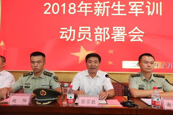 2018年8月11日上午,必赢bwin线路检测中心学校军训领导小组及负责人在南校区学术报告厅,召开了2018年新生军训动员部署会。学校分管军训工作的党委副书记、副校长、军训团政委张宗胜,学工部、安全管理处分管领导,南北校区负责军训的二级学院军训负责人,军训带队辅导员老师及承训部队官兵参加会议,学工部部长龙新良主持会议。